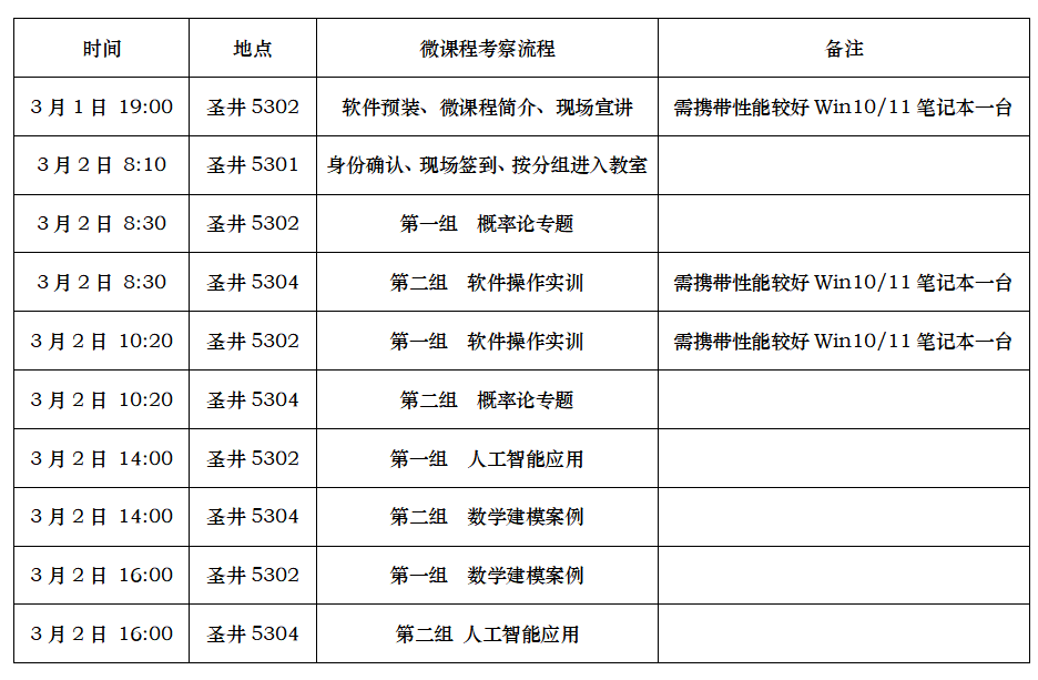 微课程考察安排